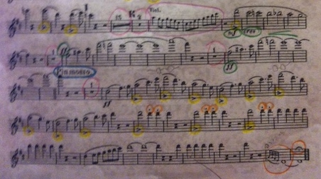 In my last blog I discussed the idea of coloring your music to represent the different types of tone colors that you wish to convey in performance. Color may be also used as a practice tool to differentiate the changing nature of aspects such as dynamics, tempo changes, articulation and so on. For the visual learners out there, connecting colors to changes in the music trains your brain to anticipate without necessary looking ahead. For example, if you can see a large green circle in your periphery, your brain, your air, and your fingers will prepare to go faster, be louder, etc. and will therefore leave nothing to chance. Of course if you would rather leave everything to chance than you can just toss the idea down the toilet. However, if your intention is to follow the composer’s original guidelines, using color is an excellent organizational tool!