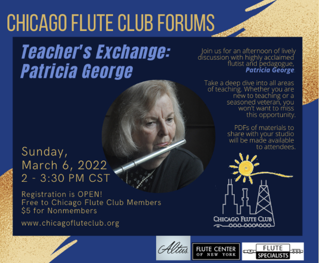 Before I begin, I also wanted to mention that Patricia George will be hosting a Teacher’s Exchange workshop with the Chicago Flute Club this weekend (Sunday, March 6, 2022, 2:00-3:30 pm CST) where she will be discussing topics such as stance, setup, harmonics, teaching scales with tetrachords, and note-groupings. This is a virtual workshop and the cost to join is only $5.00 for non-members or free to Chicago Flute Club Members (that’s less than a drink at Starbucks!). The deadline to register for this class is tomorrow at 10:00 pm CST! Please visit the following link to sign up: https://www.chicagofluteclub.org/page-18192 (Please note: This is also not sponsored. I just really love these virtual classes offered through the Chicago Flute Club. I am a big fan of their Fluting with Stars series and hope that it continues into the future). Check it out!